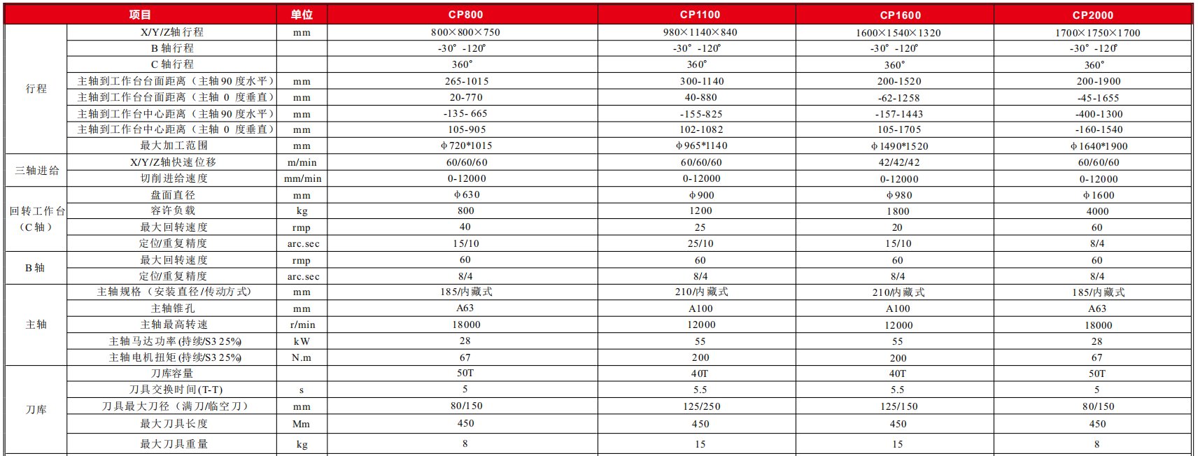 高速臥式擺頭五軸加工中心